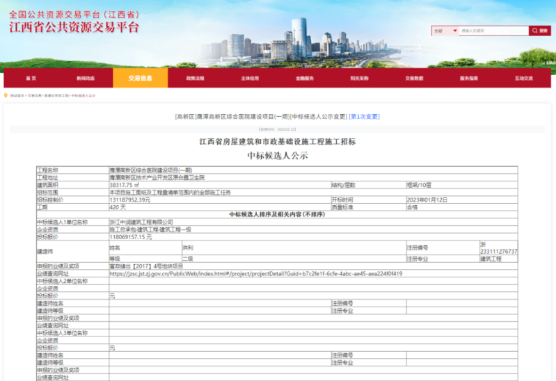 鷹潭高新區(qū)綜合醫(yī)院建設項目(一期)項目中標公示圖