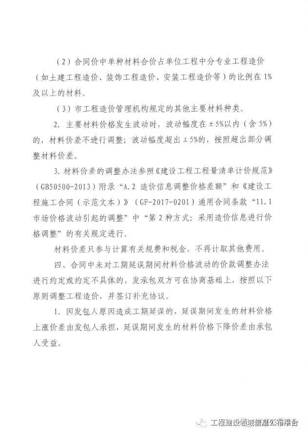四、承發(fā)包雙方應進一步增強工程承包風險意識,招標人應在招標文件和合同中,充分考慮物價上漲對工程質(zhì)量、施工安全和工期的影響,明確約定材料價格風險范圍和超出風險范圍后的調(diào)整辦法。投標人在投標報價時應考慮價格風險因素并計算相應的風險費用,不得盲目壓價,確保工程質(zhì)量和施工安全,保證工程按期交付使用。