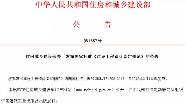 現(xiàn)批準(zhǔn)《建設(shè)工程造價鑒定規(guī)范》為國家標(biāo)準(zhǔn),編號為GB/T51262-2017,自2018年3月1日起實施。