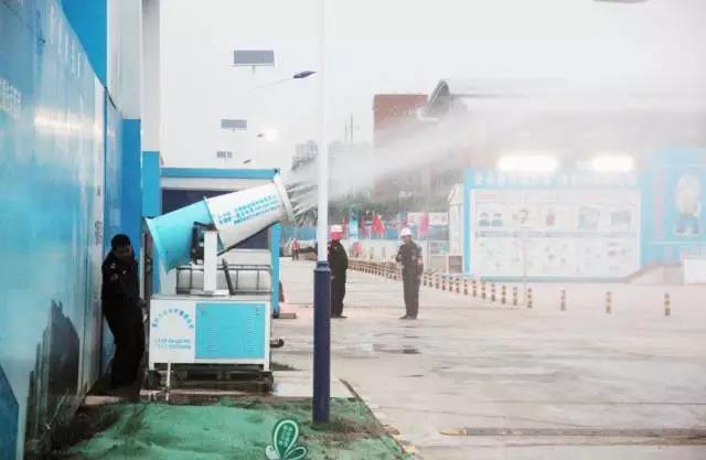 建設(shè)中第1個應(yīng)用了除霾神器——將霧炮機(jī)和PM2.5自動監(jiān)測儀聯(lián)動起來。當(dāng)監(jiān)測儀監(jiān)測到空氣中PM2.5濃度高于每立方米75微克時,霧炮機(jī)就會自動噴出水霧,最遠(yuǎn)射程達(dá)30多米,直接節(jié)省了人力。