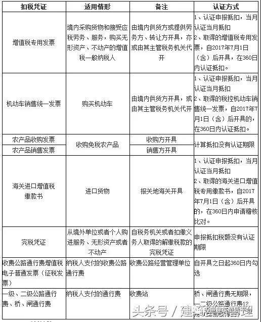 目前可抵扣增值稅進(jìn)項(xiàng)稅額的扣稅憑證參見(jiàn)下表: