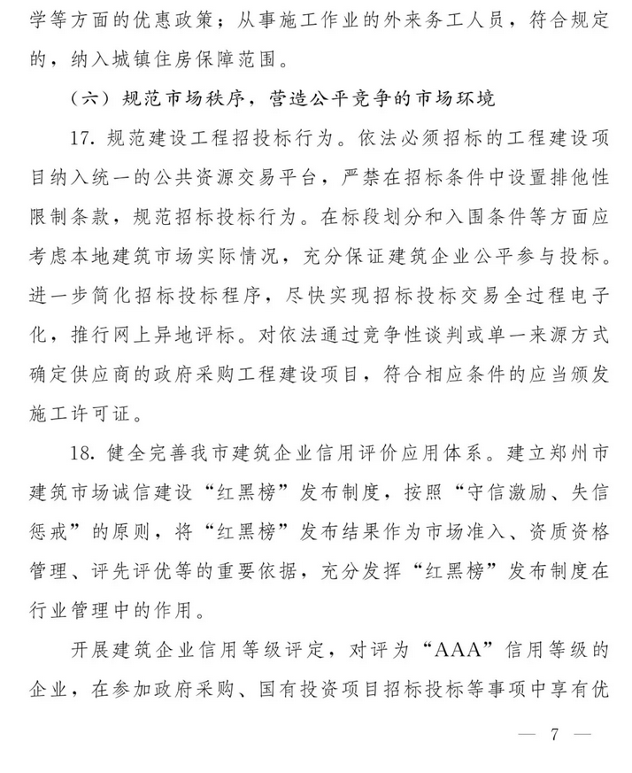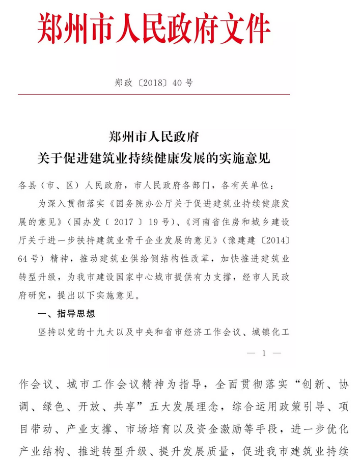 建筑業(yè)作為傳統(tǒng)基礎(chǔ)性支柱產(chǎn)業(yè),在城鄉(xiāng)基礎(chǔ)設(shè)施建設(shè)中發(fā)揮了支撐和先導(dǎo)作用。近年來,建筑業(yè)在發(fā)展中遇到許多新情況新問題,得到黨中央、國務(wù)院和省市政府的高度重視,為貫徹落實(shí)《中共中央 國務(wù)院關(guān)于進(jìn)一步加強(qiáng)城市規(guī)劃建設(shè)管理工作的若干意見》、國務(wù)院辦公廳《關(guān)于促進(jìn)建筑業(yè)持續(xù)健康發(fā)展的意見》(國辦發(fā)〔2017〕19號)和省政府扶持建筑業(yè)發(fā)展政策研討座談會(huì)要求,加快推進(jìn)我市建筑業(yè)轉(zhuǎn)型升級,2017年制定出臺了《鄭州市人民政府關(guān)于促進(jìn)建筑業(yè)持續(xù)健康發(fā)展的實(shí)施意見》(鄭政〔2017〕31號),收到較好效果。2018年,按照市政府辦公廳鄭政辦明電〔2018〕187號要求,依據(jù)《反壟斷法》及公平競爭原則,在鄭政〔2017〕31號文件基礎(chǔ)上進(jìn)行了修改,修改完善了《鄭州市人民政府關(guān)于促進(jìn)建筑業(yè)持續(xù)健康發(fā)展的實(shí)施意見》(以下簡稱《實(shí)施意見》),原鄭政〔2017〕31號文件自該文件印發(fā)之日起作廢。