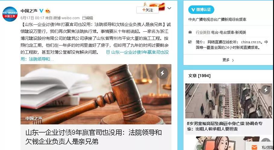 事情要從十年前說起。一家名為浙江博元建設(shè)股份有限公司的建筑公司承接了山東省青州市平安大廈的施工工程。按照約定工期,他們在一年多的時(shí)間里蓋好了房子,但卻用了九年的時(shí)間討要剩余的工程款,甚至對簿公堂都沒有解決問題。