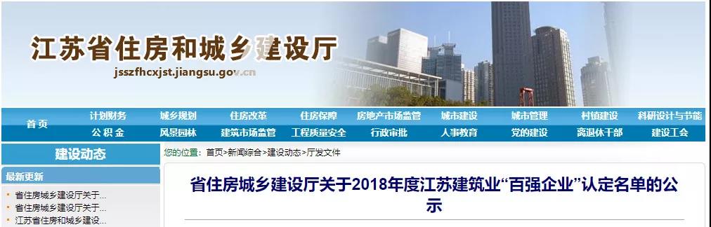 省住房城鄉(xiāng)建設(shè)廳關(guān)于2018年度江蘇建筑業(yè)“百?gòu)?qiáng)企業(yè)”認(rèn)定名單的公示