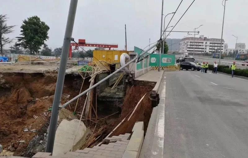 地鐵1號(hào)線勝利橋車站塌方現(xiàn)場(chǎng)↑