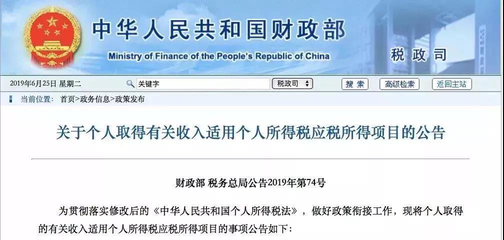 6月25日,財(cái)政部、稅務(wù)總局聯(lián)合印發(fā)《關(guān)于個(gè)人取得有關(guān)收入適用個(gè)人所得稅應(yīng)稅所得項(xiàng)目的公告》(以下簡稱“公告”)。
