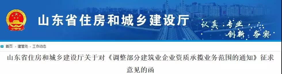 為扶持建企做大做強(qiáng),近日山東省住房和城鄉(xiāng)建設(shè)廳、交通運(yùn)輸廳、水利廳聯(lián)合發(fā)文,就《調(diào)整部分建筑業(yè)企業(yè)資質(zhì)承攬業(yè)務(wù)范圍的通知》公開征求意見。《通知》提到: