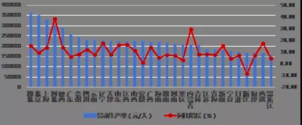 圖7 2019年上半年各地區(qū)建筑業(yè)勞動生產(chǎn)率及其增速