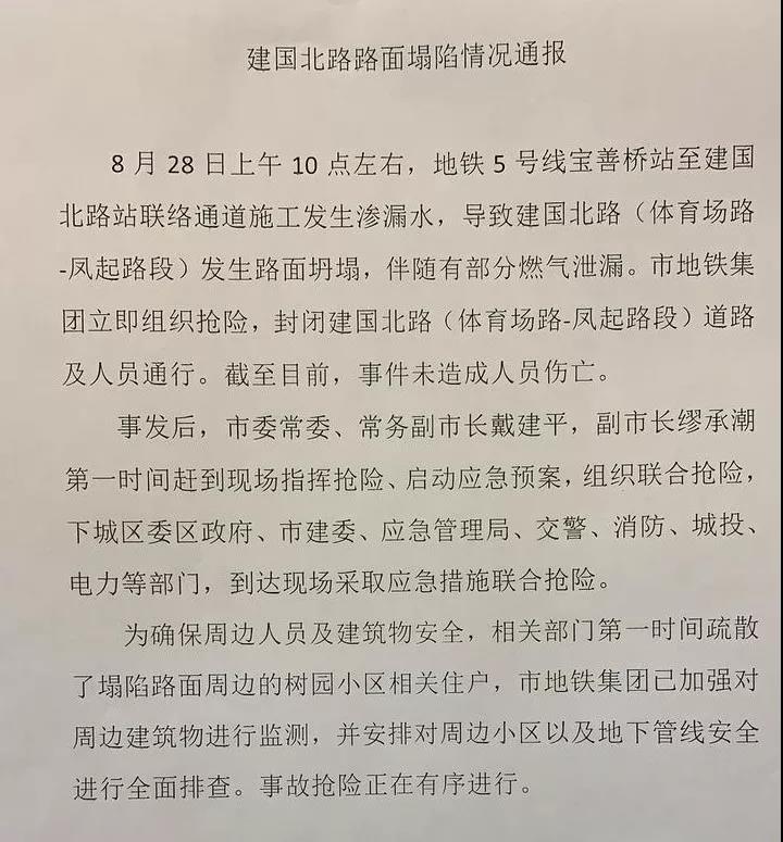 杭州下城區(qū)召開(kāi)“建國(guó)北路路面塌陷情況通報(bào)會(huì)”,通報(bào)如下▼