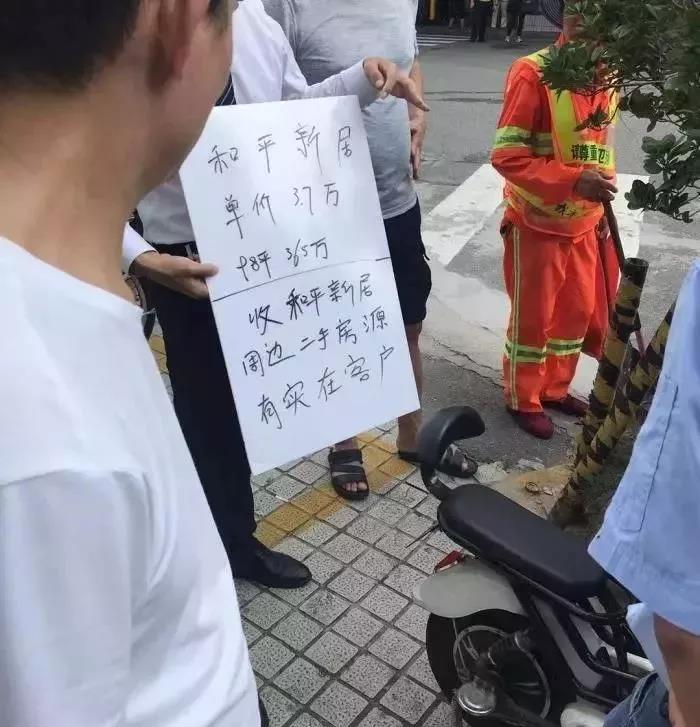 在事故現(xiàn)場(chǎng)附近,有媒體報(bào)道,發(fā)現(xiàn)有中介人員身掛宣傳牌,收購?fù)^(qū)二手房。