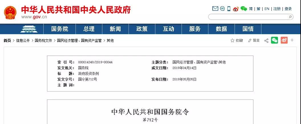 2019年5月5日,國務院公布《政府投資條例》(以下簡稱《條例》),自7月1日起施行。