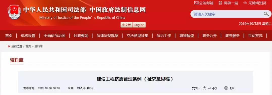 10月8日,司法部發(fā)布《建設(shè)工程抗震管理?xiàng)l例(征求意見(jiàn)稿)》,主要內(nèi)容如下:1、對(duì)相關(guān)單位法律責(zé)任進(jìn)行明確。