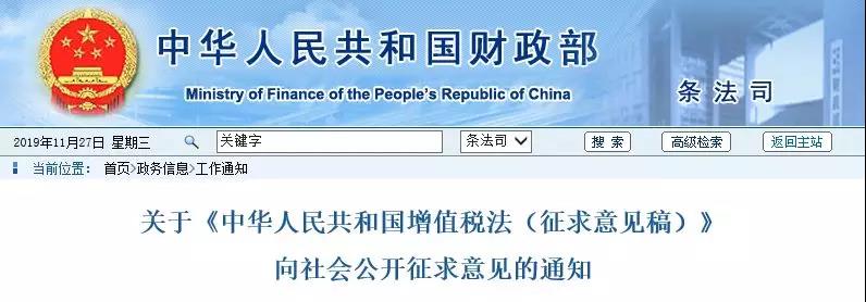 立法了!中華人民共和國增值稅法(征求意見稿)發(fā)布!