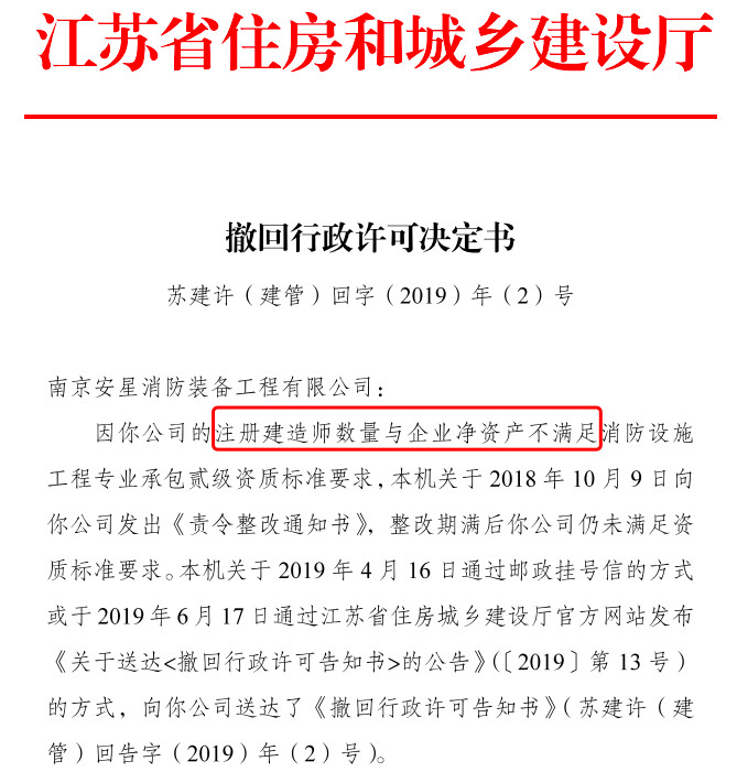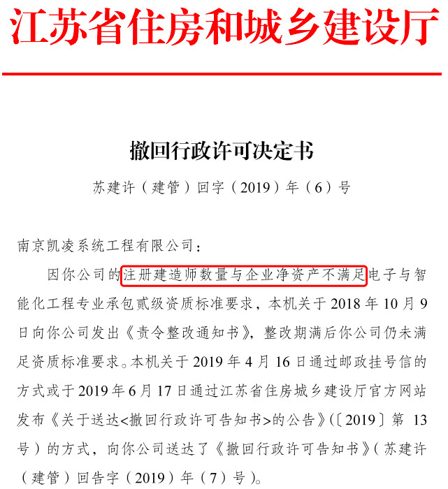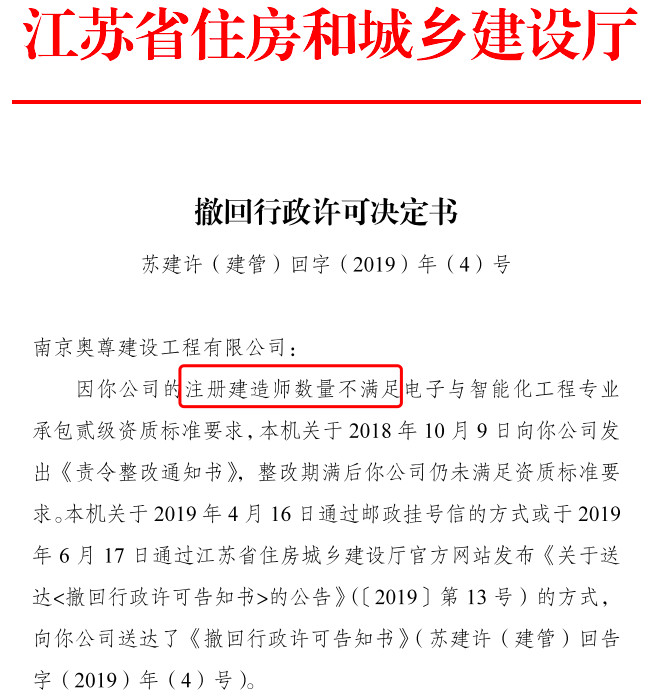 被撤回資質(zhì)企業(yè)應(yīng)于2020年1月20日前將相應(yīng)資質(zhì)證書正本及副本交回發(fā)證機(jī)關(guān)(地址:南京市建鄴區(qū)漢中門大街145號(hào)省政務(wù)服務(wù)大廳)。