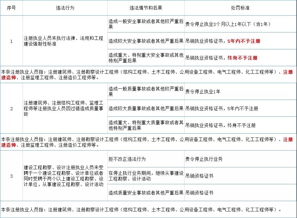 (編者注:此前對較大安全事故的注冊人員處罰為吊銷執(zhí)業(yè)資格證書,5年不予注冊。此次將處罰標(biāo)準(zhǔn)大大提高!)