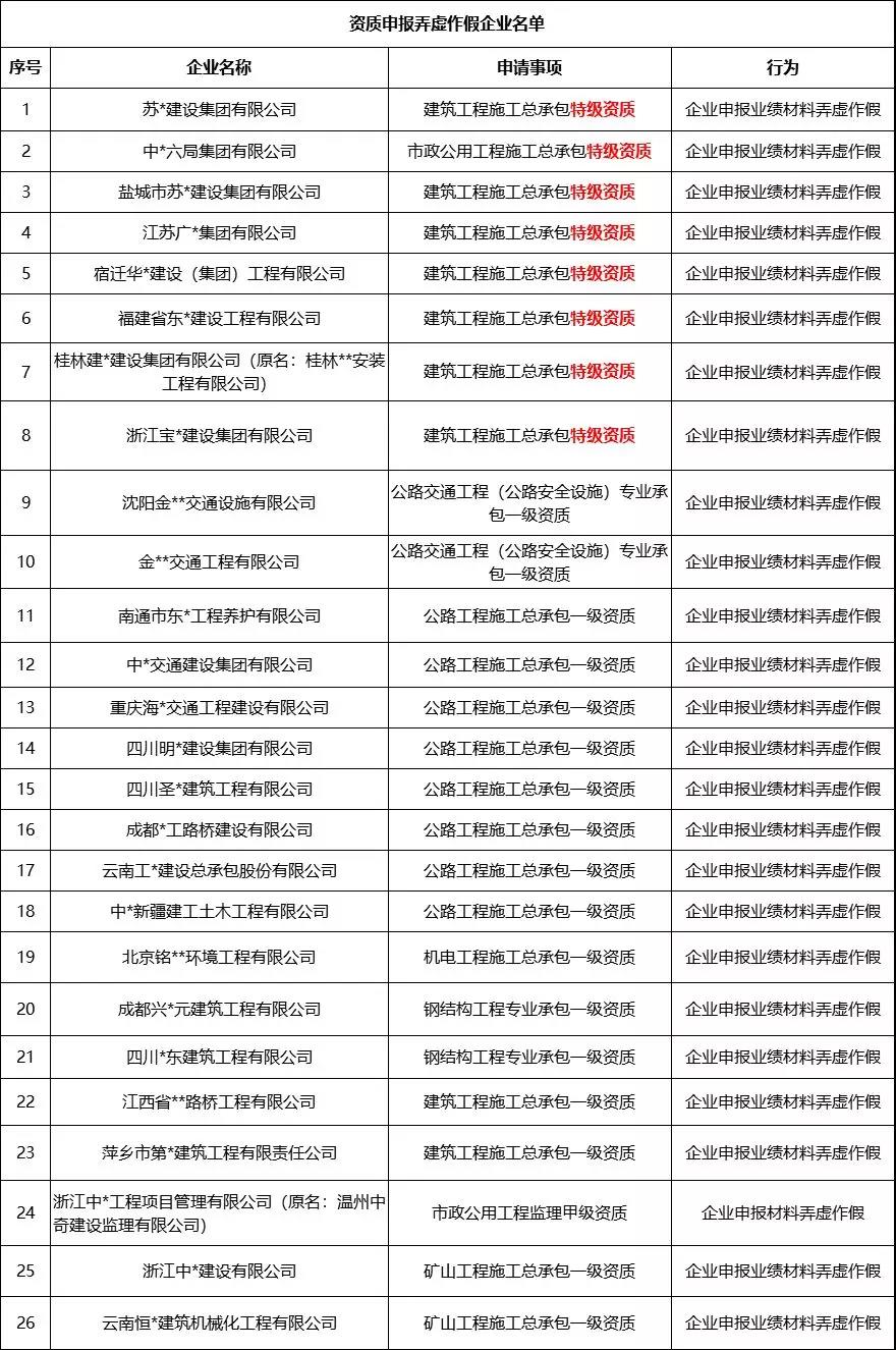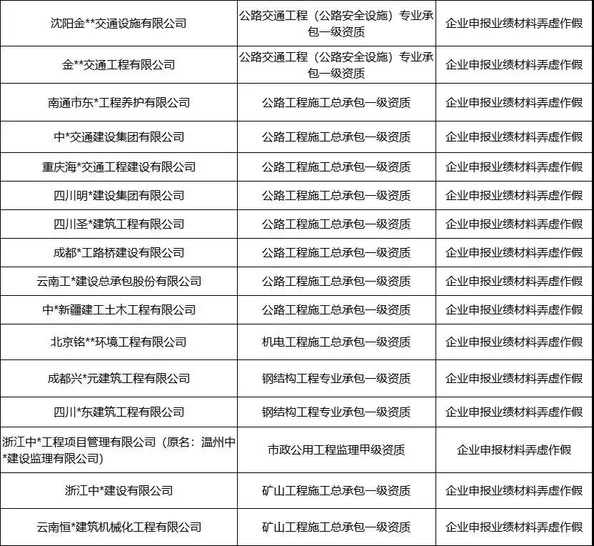 1、資質(zhì)申報弄虛作假企業(yè)名單