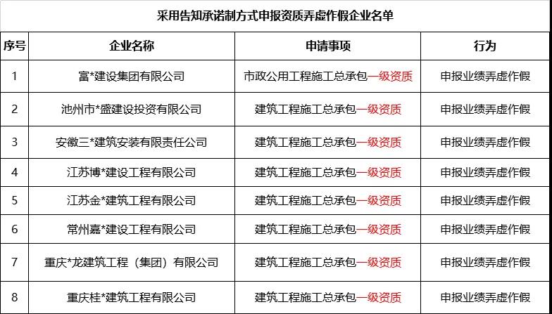 2、采用告知承諾制方式申報資質(zhì)弄虛作假企業(yè)名單