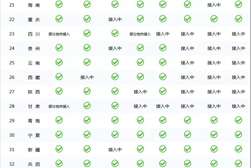 可以看出,大部分省份已經(jīng)完成了接入,其他沒有完成的省份也在逐步完善接入中。
