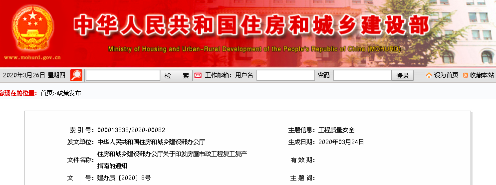 印發(fā)房屋市政工程復(fù)工復(fù)產(chǎn)指南的通知
