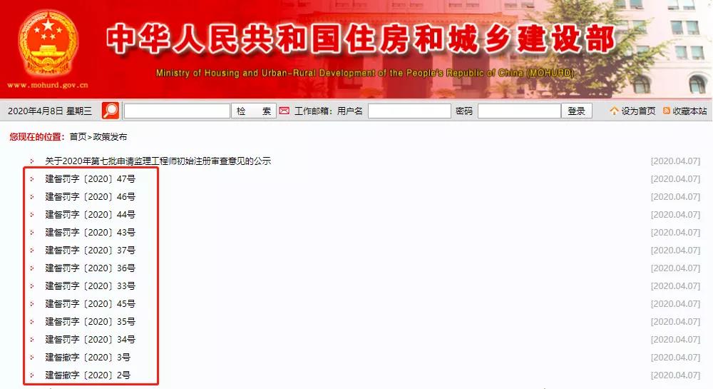 通過(guò)官網(wǎng)查詢,2020年以來(lái),住建部已經(jīng)下發(fā)59份處罰(點(diǎn)擊列表查看):