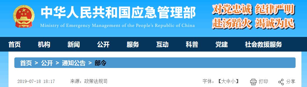 第88號公布,根據(jù)2019年7月11日應(yīng)急管理部令
