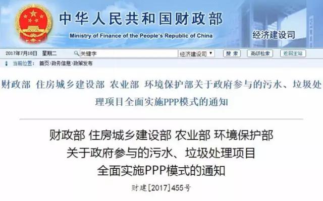 政策 | 四部委聯(lián)合發(fā)文:政府參與的污水、垃圾處理項(xiàng)目全面實(shí)施PPP模式